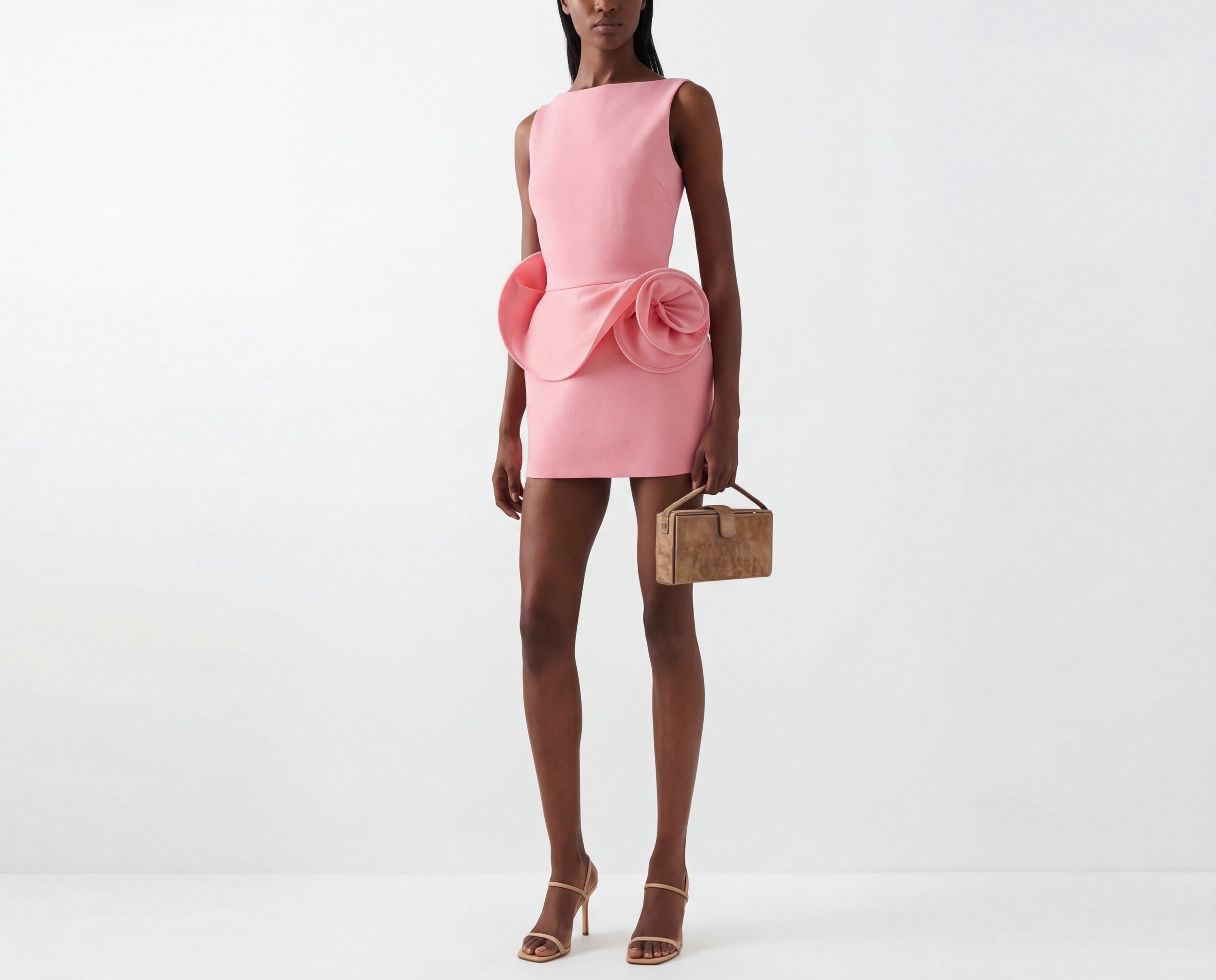 A minimalist pink dress with sculptural details adds a modern and sophisticated touch. This style is perfect for fashion-forward outfits and elegant events.